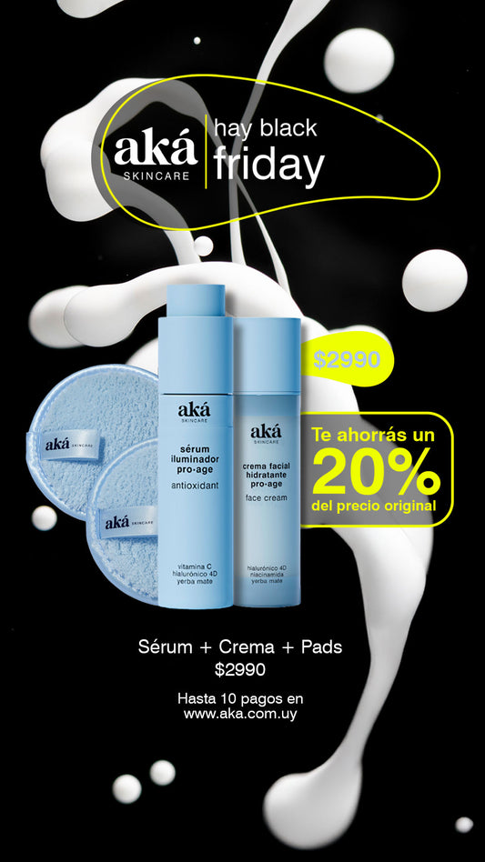 Propiedades antioxidantes: La yerba mate contiene niveles muy altos de antioxidantes que ayudan a proteger la piel del daño causado por los radicales libres. Los radicales libres son moléculas volubles o cambiantes que pueden dañar las células y favorecer el desarrollo de varios problemas de la piel, como el aumento del estrés oxidativo que lleva al envejecimiento prematuro, la opacidad y la hiperpigmentación. El uso de la planta en el área cosmética produce un efecto antioxidante muy superior al Té Verde y es para aká el ingrediente transversal en toda nuestra línea de Skincare.